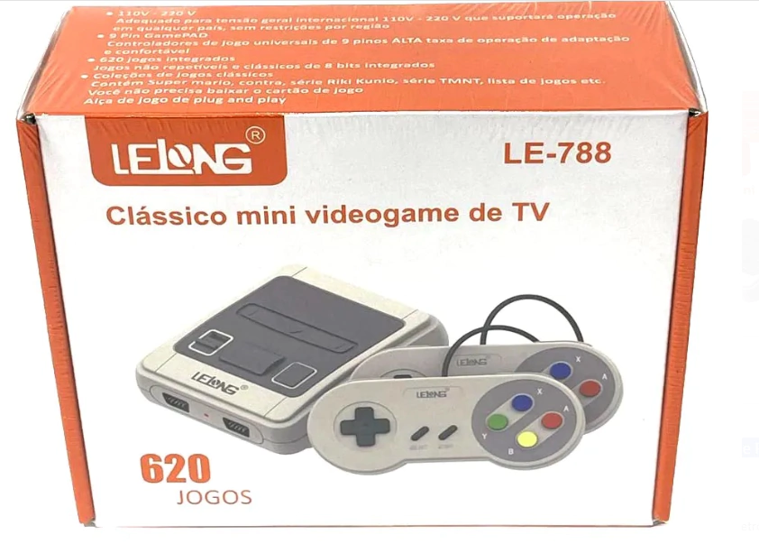 Seu tamanho pequeno (Cabe na Palma da Mão) o faz ser extremamente fácil de usar e transportar. Videogame com 620 Jogos 8-Bits + 2 controles Os 620 Jogos vêm instalados na memória interna.
